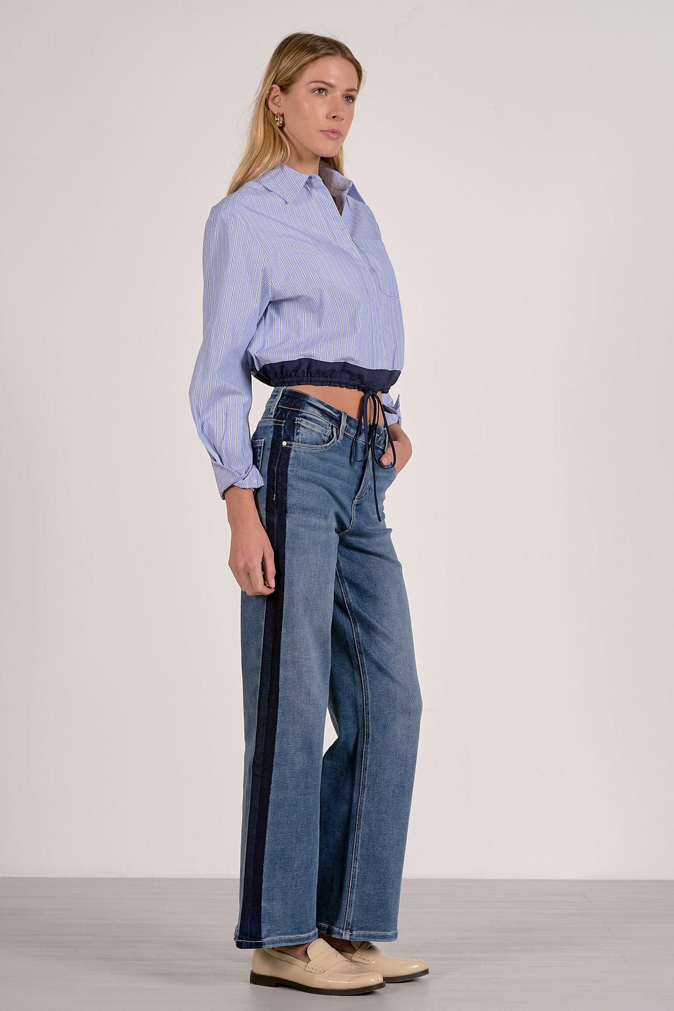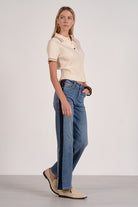 These Tonal Track Stripe Denim Jeans feature a subtle navy side stripe that blends seamlessly into the denim, creating a long, lean line for a flattering, elevated look. The relaxed straight-leg silhouette feels modern and easy, while the mid-to-high rise offers comfortable, everyday wear.