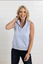Designed with a relaxed silhouette, this piece features a modern half-zip neckline, soft structured fabric, and a front kangaroo pocket for that effortless, laid-back feel. The sleeveless cut gives it a flattering, updated look that’s perfect for layering or wearing on its own.