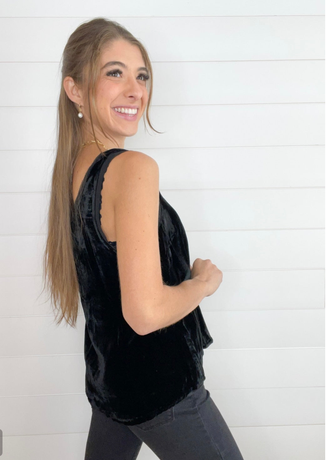Bring luxury to your layers with our Velvet Layering Tank – a timeless essential for fall and winter styling. Designed with a flattering round neckline, soft mesh lining, and a relaxed fit, this tank is perfect for wearing on its own or paired under your favorite jackets, cardigans, or blazers.